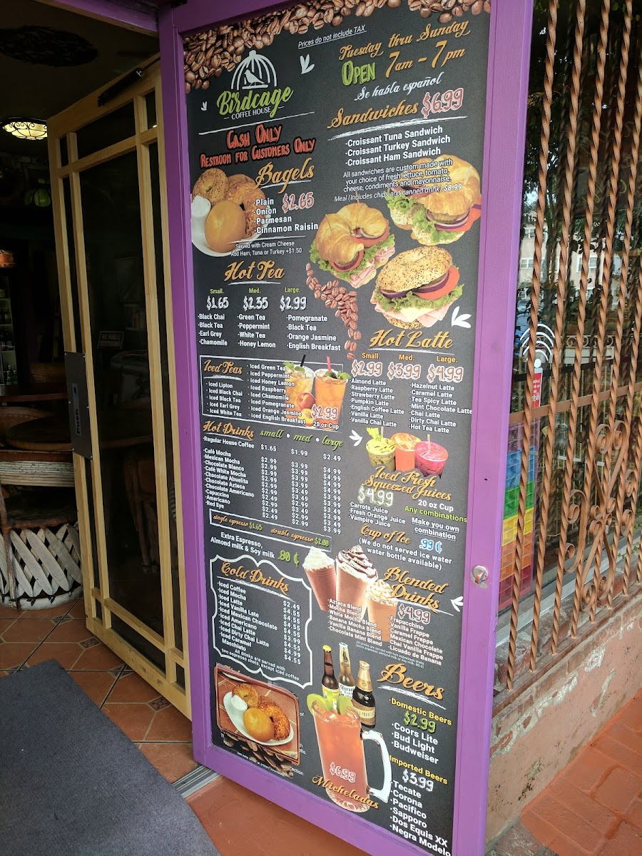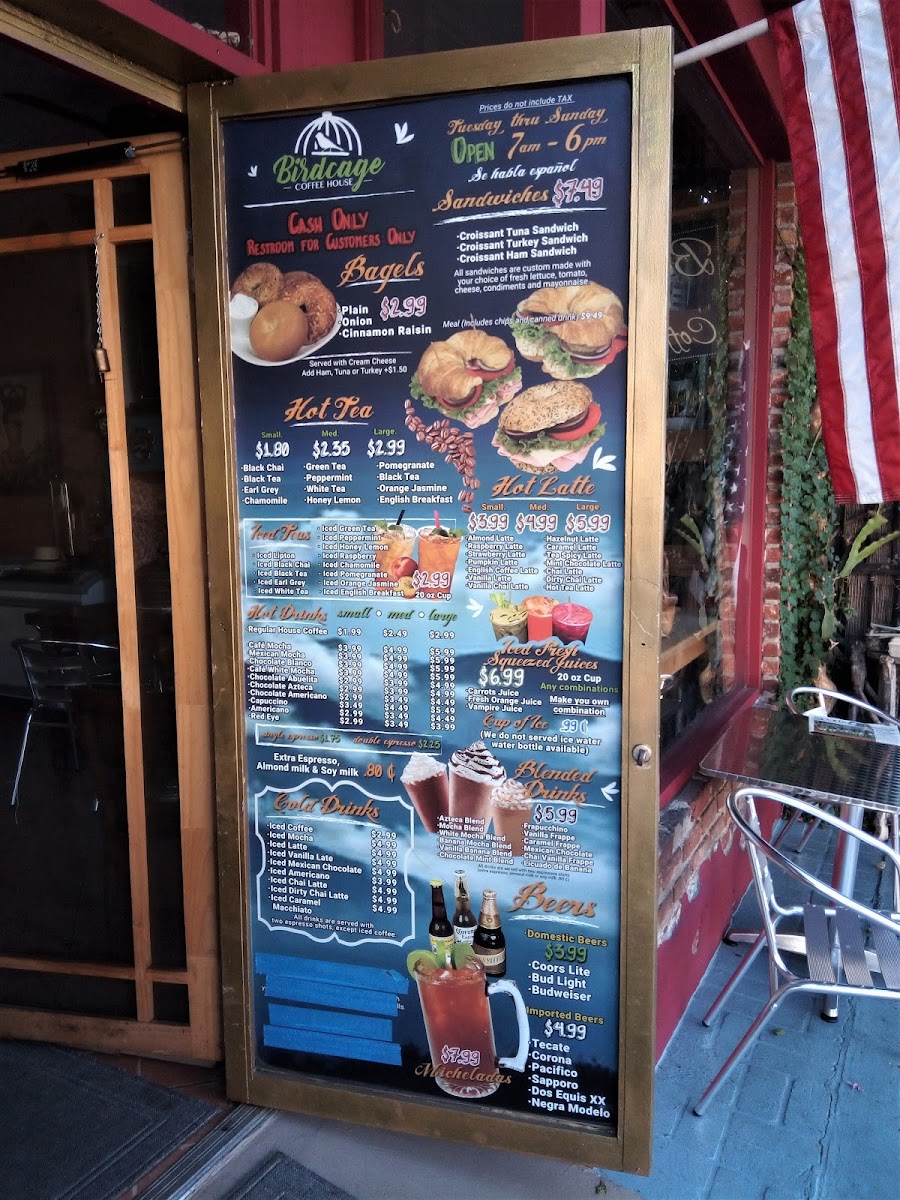 Birdcage Coffee House Menu